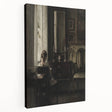 This Dark Academia wall art captures a tranquil scene of a young girl reading in a shadowy, antique study room. The dim lighting and vintage furniture set the tone for deep contemplation and intellectual pursuit, making this piece an excellent choice for moody room decorations and atmospheric art for study spaces. The muted colors and intricate details of the room create a timeless aesthetic that complements the Dark Academia style, blending gothic charm with a vintage academic vibe.