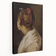 This evocative Dark Academia wall art captures the back view of a woman adorned with a striking red ribbon in her intricately braided hair, offering a subtle yet powerful visual narrative. The soft, muted tones combined with the vibrant red accents create a compelling contrast that enhances the gothic art decor style. The detail in her hairstyle and the richness of the background give this piece a timeless elegance, perfect for vintage academic prints and moody aesthetic decor.