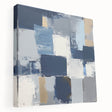 Add structure and texture to your space with this abstract art print, composed of layered color blocks in navy blue, gray, beige, and white. Thick brushstrokes and organic edges give the geometric layout a handcrafted, expressive quality—perfect for interiors that blend modern design with artistic texture.