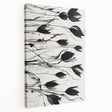 Monochrome Electric Floral Art: Bold Black Tulips on Modern Canvas