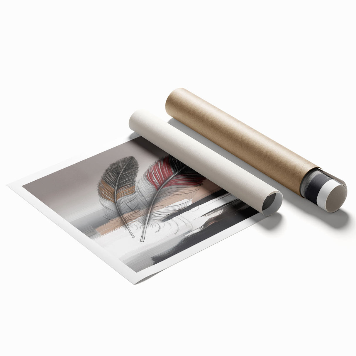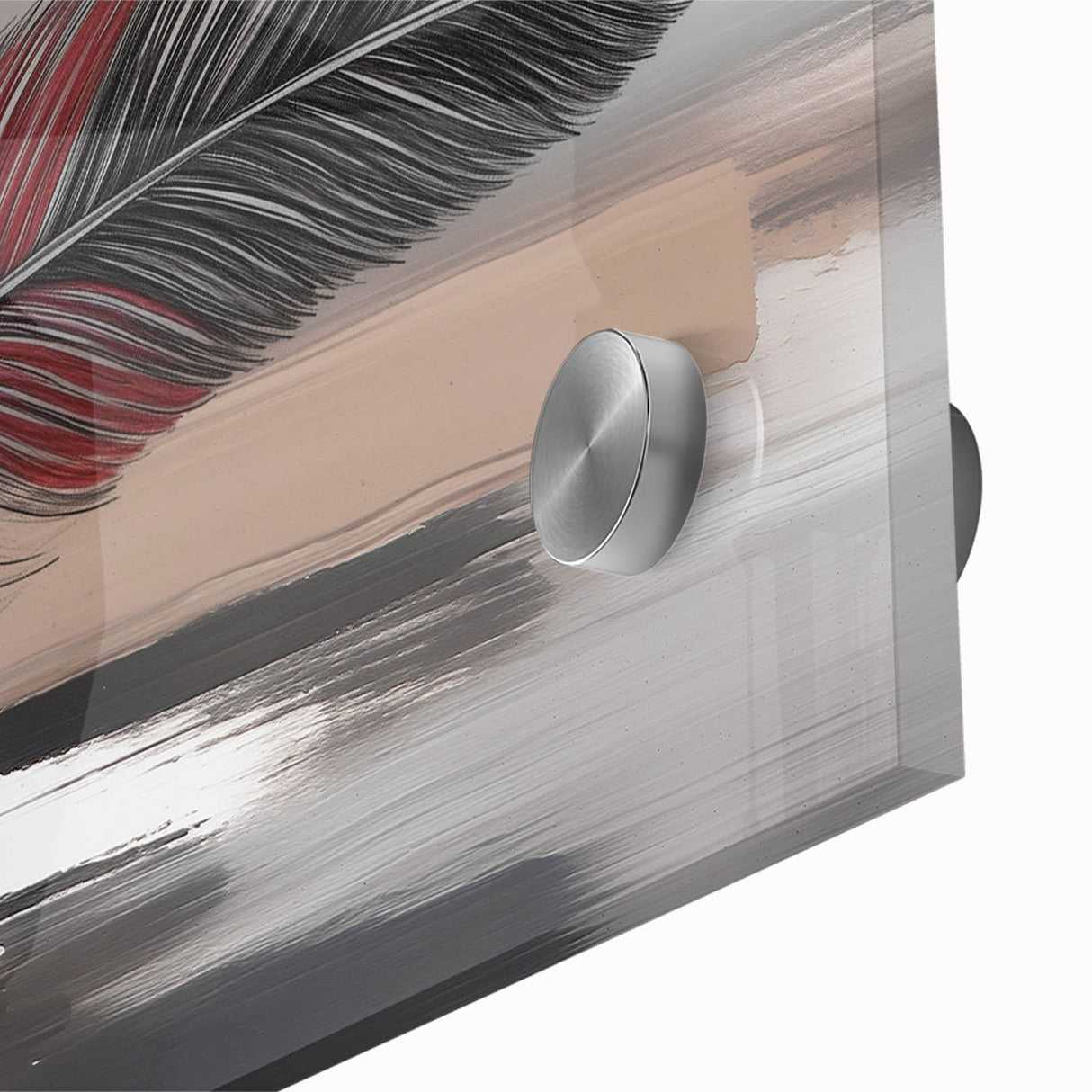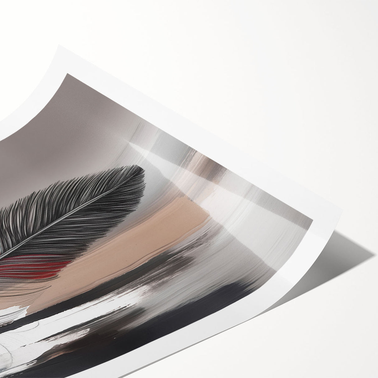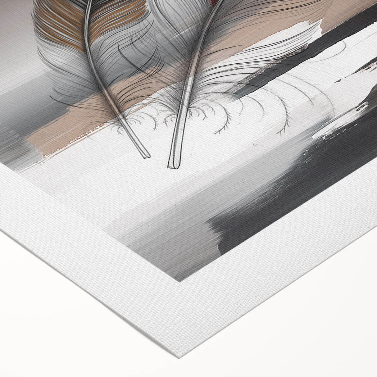 Add a touch of elegance and sophistication to your space with this beautifully detailed abstract feather artwork. Featuring two intricately designed feathers with rich red and brown accents, set against a soft grey and beige background, this piece exudes a sense of calm and refinement. The delicate strokes and subtle color transitions create a harmonious composition that enhances any room's aesthetic.