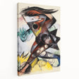 Discover the bold expression of Franz Marc’s "Caliban – Figurine for The Tempest," an abstract masterpiece inspired by Shakespeare's iconic play. This painting captures the chaotic and primal energy of Caliban, blending intense yellows, deep reds, and earthy browns with geometric and fluid shapes. The dramatic contrasts and dynamic brushstrokes evoke the raw emotion and complexity of the character, making this artwork a captivating addition to any space.