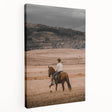 Capture the spirit of the countryside with this evocative horseback riding wall art. This rustic artwork portrays a serene cowboy scene, where the rider takes in the sweeping, golden plains of the countryside. The warm, earthy tones evoke the feeling of simplicity and calmness that comes with rural life, making it the perfect addition to any farmhouse or country-style home. This vintage-inspired piece blends effortlessly with an antique farmhouse aesthetic, adding a touch of rustic charm to your walls.