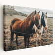 Embrace the tranquility of the countryside with this beautiful "Two Horses" farmhouse wall art. This artwork captures a heartwarming moment between two horses standing side by side in a serene, open pasture. With one horse featuring a rich chestnut brown coat and the other a striking contrast of black and white, this piece perfectly showcases the beauty and grace of these majestic animals. The rustic setting, combined with the soft colors of nature, creates a calming and inviting ambiance that is ideal for any farmhouse-style home.