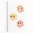 Brighten up your child's space with this cheerful smiling flowers children’s wall decor. Featuring three adorable daisy-like blooms in warm pastel tones, this artwork adds a playful and whimsical touch to any nursery, bedroom, or playroom.