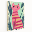 Add a touch of personality and retro charm to your child’s space with this bold striped cat illustration print, designed to bring a unique and artistic feel to any nursery, playroom, or kids' bedroom. Featuring a confident pink cat with yellow stripes against a textured teal and green jungle backdrop, this children's wall décor piece adds a fun and expressive statement to any space.