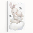 Create a peaceful and dreamy atmosphere in your child’s space with this adorable sleeping bunny wall art. Featuring a loving mother bunny cuddling her baby on a soft cloud, this heartwarming illustration symbolizes comfort, love, and warmth. The gentle pastel tones, delicate star details, and soft shading make this a perfect fit for a girls' bedroom, nursery, or playroom.