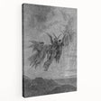 This Gothic wall art piece showcases a group of ethereal angels ascending into the heavens, set against a backdrop of a glowing sunrise. The intricate details and mystical composition evoke a sense of wonder and spirituality, making it an ideal choice for those who appreciate the celestial and Gothic aesthetic. The monochrome tones create a timeless and atmospheric scene, perfect for adding a touch of mysticism and elegance to any space.