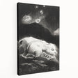 This Gothic wall art piece features a surreal depiction of a fantastical creature lying beneath a night sky filled with glowing, otherworldly orbs. The contrast of light and dark, along with the intricate details of the creature's face, evokes a sense of mystery and enchantment. The dreamlike composition transports viewers into an eerie, mystical world, making it a perfect addition for those who appreciate the ethereal and surreal essence of Gothic art. The atmospheric and imaginative nature of this artwork adds a dramatic and otherworldly touch to any space.