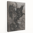 Immerse yourself in the dark allure of Gothic mythology with this dramatic wall art, featuring a fierce, mythical creature in a dynamic struggle. The detailed illustration showcases a powerful winged being intertwined with a serpent-like figure, evoking themes of fantasy and ancient legends. This vintage Gothic artwork brings a sense of both chaos and elegance, making it a perfect piece for those drawn to fantasy-inspired decor with a dark twist.