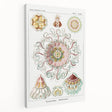 Introduce elegance and scientific beauty to your space with this intricate artwork inspired by Ernst Haeckel's renowned biological illustrations. This piece features stunningly detailed jellyfish designs, highlighted by symmetrical patterns and a soft pastel palette of pink, green, and yellow. The harmonious combination of nature and art creates a sophisticated and calming atmosphere, making it an ideal addition to modern or eclectic interiors.