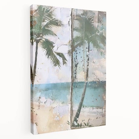 • Abstract minimalist wall art on stretched canvas showcasing soft pastel colors and geometric shapes, ideal for modern home decor. Side view highlights texture and depth.
