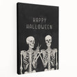 Celebrate the spooky season in style with this Happy Halloween Skeleton Wall Art. Featuring two intricately drawn skeletons against a deep black background, this design perfectly captures the eerie yet playful spirit of Halloween. One skeleton makes a peace sign while the other reacts in amusement, adding a fun and lively touch to the artwork.