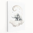 Create a dreamy and calming atmosphere in your child’s space with this Children’s Wall Art Print, featuring a charming baby elephant resting on a fluffy cloud beneath a glowing moon and twinkling stars. The soft grayscale tones make this Stretched Canvas Art for Kids a perfect fit for nurseries, playrooms, and children's bedrooms.