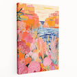 Transport your child’s imagination to a vibrant coastal canyon with this stunning kids' room wall art. This children’s wall art print features a breathtaking blend of warm orange and pink canyon cliffs, lush blooming flowers, and a serene blue ocean view, creating a colorful and dreamy atmosphere. The bold yet soft hues make it a perfect choice for nurseries, playrooms, and kids' bedrooms.