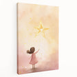 Create a dreamy and serene atmosphere in your child’s space with this Nursery Wall Art, featuring a young girl reaching for a glowing star. The soft gold, beige, and blush pink hues blend beautifully to evoke a sense of wonder and imagination, making it an ideal addition to nurseries, playrooms, and children's bedrooms.