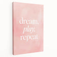 Inspire creativity and joy with this Dream Play Repeat Nursery Wall Art. Featuring a soft pink watercolor background and the uplifting phrase "Dream, Play, Repeat", this artwork brings a sense of fun, imagination, and positivity to any child’s space. Its minimalist yet elegant typography and soothing colors make it an ideal addition to baby room decor and children’s wall art collections.