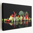 Designed for kitchen art lovers, this piece is available in multiple formats, including canvas art for kitchen, framed kitchen prints, and acrylic kitchen artwork. The vivid reflection of the vegetables on the glossy surface enhances its visual appeal, creating a dynamic and elegant kitchen artwork that pairs well with any decor.