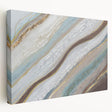 Elevate your space with this calming landscape acrylic print, featuring an exquisite blend of white, beige, muted blue, and gold. The flowing, wave-like patterns mimic the natural beauty of geodes and riverbeds, creating a tranquil nature scene with an abstract artistic twist. The combination of soft textures and metallic details makes this an elegant serene landscape wall art piece, perfect for modern and luxurious interiors.