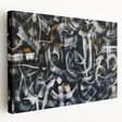This modern abstract wall art captivates with its bold, expressive strokes of black, white, and gold, creating a dynamic interplay of movement and contrast. The swirling, layered brushstrokes form an intricate composition that adds energy and sophistication to any interior. As part of the modern abstract art collection, this piece is perfect for contemporary, industrial, and luxurious spaces.