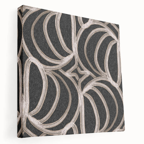 • Abstract canvas wall art showcasing an intricate design of multicolored strokes and lines, stretched for display with a sleek side view, perfect for modern decor.