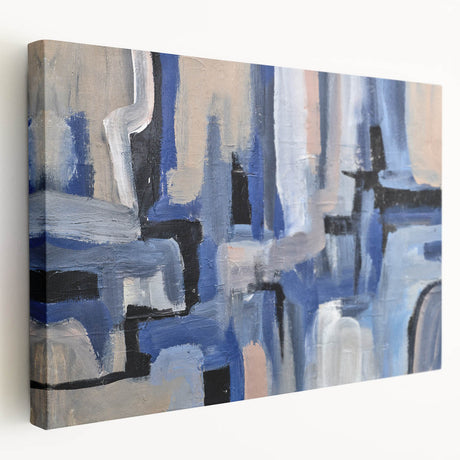 • Side view of a stretched canvas showcasing an abstract minimalist design with soft, muted colors, perfect for modern home decor. Ideal for enhancing contemporary interiors.