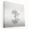 Bring a sense of tranquility and balance to your home with this minimalist tree reflection wall art. Featuring a solitary tree mirrored in still water, this modern wall art uses a black and white palette to create a timeless and calming atmosphere. The soft gradient background and delicate branches evoke a sense of peace and harmony, making it an ideal addition to wall art for living room spaces, bedrooms, or offices.