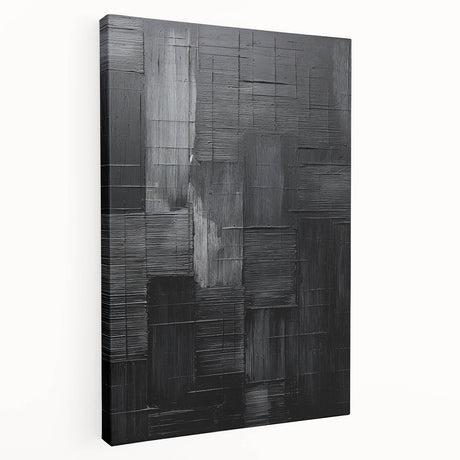• Abstract architectural wall art on stretched canvas, showcasing modern geometric patterns in vibrant colors, ideal for contemporary home decor. The side view emphasizes its textured surface and gallery-ready presentation for stylish interiors.
