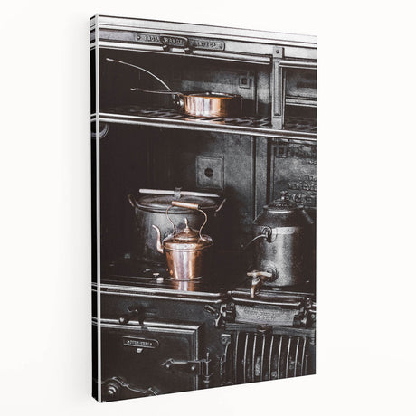 • Side view of a stretched canvas featuring a muted color depiction of the Chicago skyline, suitable for kitchen wall art.