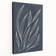 Infuse your space with elegance through this Mid-Century Modern Art piece featuring a minimalist abstract leaf design. The white flowing lines on a deep navy background create a visually appealing contrast that exudes a retro-inspired aesthetic. Perfect for those who appreciate a blend of mid-century modern decor and contemporary style, this artwork is a great addition to any living room, office, or bedroom.