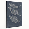 Elevate your interior with this captivating Mid-Century Modern Art piece, featuring a minimalist abstract leaf design. The intricate white linework gracefully captures the movement of the leaves, set against a deep navy background, creating a stunning contrast that embodies the essence of geometric wall decor. This artwork is perfect for those who appreciate a blend of retro-inspired elegance and mid-century modern decor.
