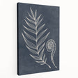 Add a touch of nature-inspired elegance to your space with this Mid-Century Modern Art featuring a minimalist botanical design. The intricate white linework of a leaf and spiral pattern set against a deep navy blue background creates a striking contrast, perfect for those who appreciate retro-inspired designs and mid-century modern decor. This piece is versatile enough to enhance any living room, bedroom, or office.