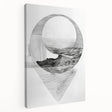 Capture the essence of elegance and motion with this striking Mid-Century Modern black-and-white geometric art. Featuring an abstract ocean scene encased within precise geometric lines and shapes, this design creates a stunning blend of nature and structure. Its monochrome palette offers a timeless aesthetic, perfect for modern, industrial, or minimalist interiors. Whether displayed in a living room, office, or bedroom, this piece brings a sense of calm and dynamic energy to any space.