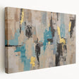 Layered and luminous, this Earthen Harmony Abstracts piece evokes nature's elements through texture and tone. With rich teal, warm beige, black, and metallic gold, this canvas wall art delivers movement and calm in equal measure. Perfect for those who love grounded, expressive modern home decor.