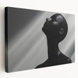 This refined fine art print features a sculptural silhouette bathed in soft light, head tilted upward in quiet reflection. The elegant contours and matte black finish evoke a powerful emotional presence. A perfect blend of emotive photography and minimalist figure art.