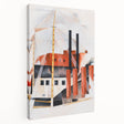 Infuse your space with the bold elegance of this modern industrial wall art, showcasing an abstract interpretation of geometric forms and industrial elements. This striking design highlights a dynamic composition of red, black, and gold tones with structured lines that evoke the energy and innovation of modern architecture.
