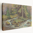 Capture the serene beauty of nature with this modern wall art, inspired by Zolo Palugyay’s Demänovský Brook. This breathtaking artwork showcases a peaceful mountain brook flowing through a lush forest, depicted in earthy greens and browns, with soft accents of blue and yellow. The textured brushstrokes evoke the gentle motion of water and the timeless calm of the wilderness, making it ideal for lovers of contemporary art with a nature-inspired theme.