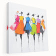Make a bold statement with this Abstract Figurative Art Collection masterpiece, featuring six elegant women in vibrant dresses. This modern figure-inspired wall art blends dynamic brushstrokes with a striking color palette, capturing movement, grace, and high-fashion allure. The contrast of bold hues against a minimalist background creates a captivating and stylish visual experience.