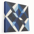Bring bold symmetry and modern energy into your space with this modern abstract wall art, designed with crisp lines and dynamic shapes. This contemporary abstract canvas is composed of striking geometric forms in rich navy blue, light blue, white, and black—creating a powerful visual rhythm that captures attention in any setting.