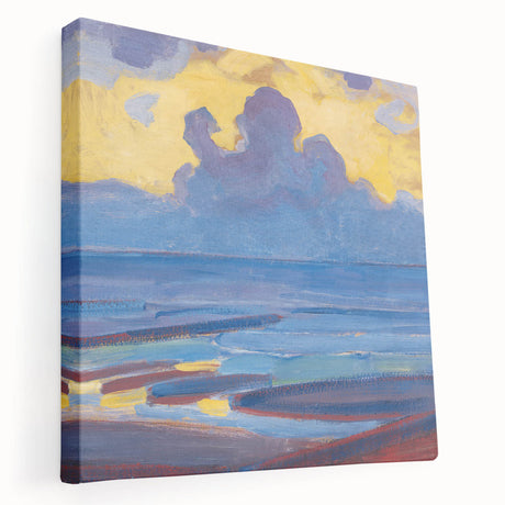 • Abstract landscape stretched canvas artwork showcasing a serene blend of earth tones and vibrant hues, ideal for modern home decor. The side view highlights the canvas's depth and texture, making it a perfect centerpiece for any room.
