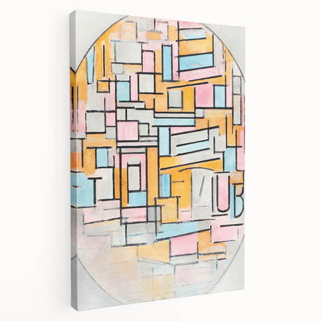 • Stretched canvas print showcasing a vibrant abstract design with bold colors, viewed from the side, highlighting its gallery-wrapped edges for modern decor.