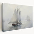 This beautiful vintage landscape art captures the serene beauty of sailboats gliding across calm waters, shrouded in a soft mist. The delicate brushwork and subtle tones of the sails and sea create a timeless and peaceful atmosphere, perfect for adding a sense of tranquility to any space. The sailors' quiet journey across the water evokes feelings of calm and nostalgia, making this piece ideal for maritime or vintage-themed home decor.