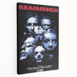 This powerful Rammstein retro poster captures the band's intensity with a cosmic, starry design. Featuring the band members' faces surrounded by a galaxy of stars, the image exudes both mystery and strength. The bold red "Rammstein" logo at the top of the poster gives it a striking visual impact, making it a must-have for any fan of the German industrial metal band or collector of vintage concert art.