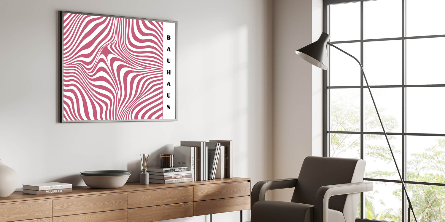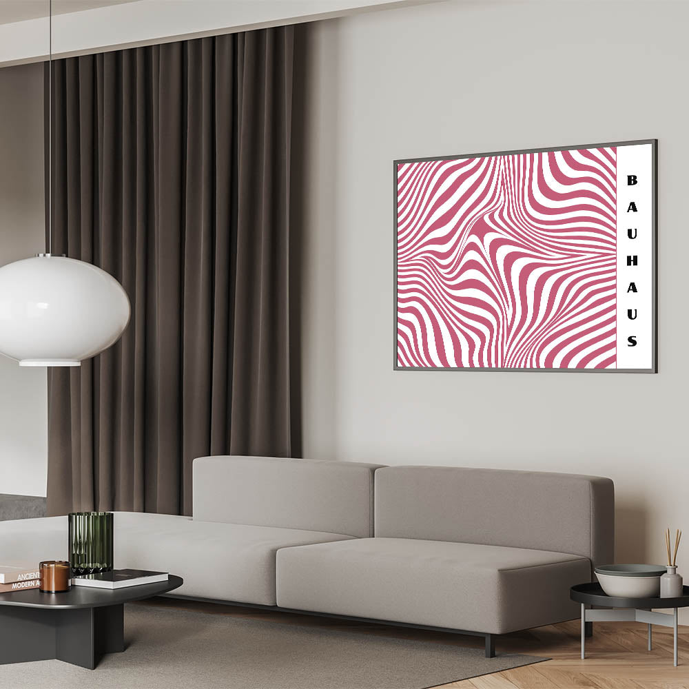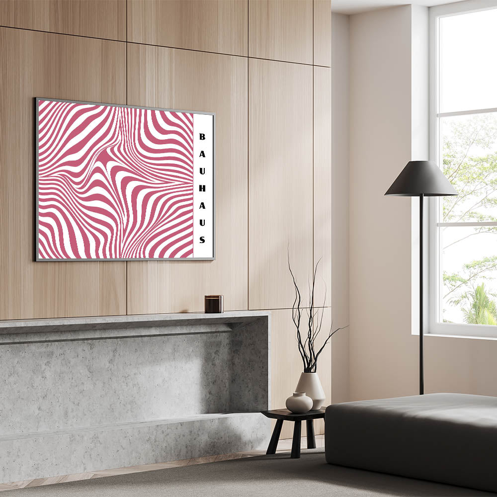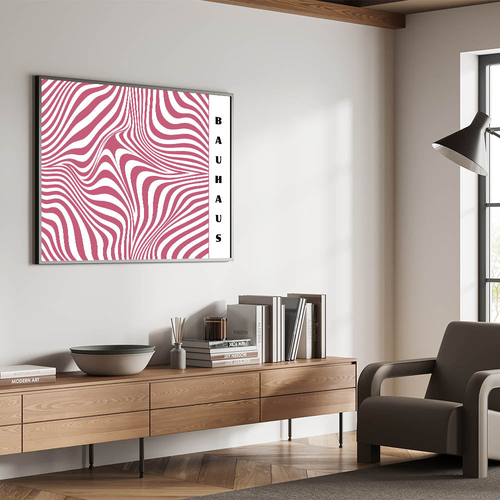 Make a bold statement in your space with this Bauhaus-inspired Bohemian wall art. Featuring a striking wavy pattern in vibrant pink and white, this abstract design adds a sense of movement and rhythm to any room. The bold lines and curves create a visual experience that is both modern and playful, making it perfect for eclectic, contemporary, and boho interiors. Whether displayed in your living room, bedroom, or office, this artwork transforms your space with its energetic and stylish design. Crafted with high-quality materials, this art piece is available in various formats to suit your decor needs.