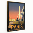 Bring the elegance of Paris into your home with this stunning Retro Paris Travel Poster, featuring a beautiful evening scene with the iconic Obelisk and fountain at the Place de la Concorde. The vintage-style design, with its bold colors and detailed artwork, captures the timeless beauty of Parisian landmarks against a rich sunset backdrop.