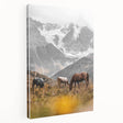 Transport yourself to the serene beauty of nature with this stunning rustic wall art featuring grazing horses set against a breathtaking mountain backdrop. The majestic peaks and wild horses evoke a sense of tranquility and freedom, making this artwork perfect for anyone looking to bring a touch of rustic nature into their home. The earthy tones of the landscape and the natural colors of the horses create a harmonious and peaceful scene, ideal for farmhouse or country-style decor.