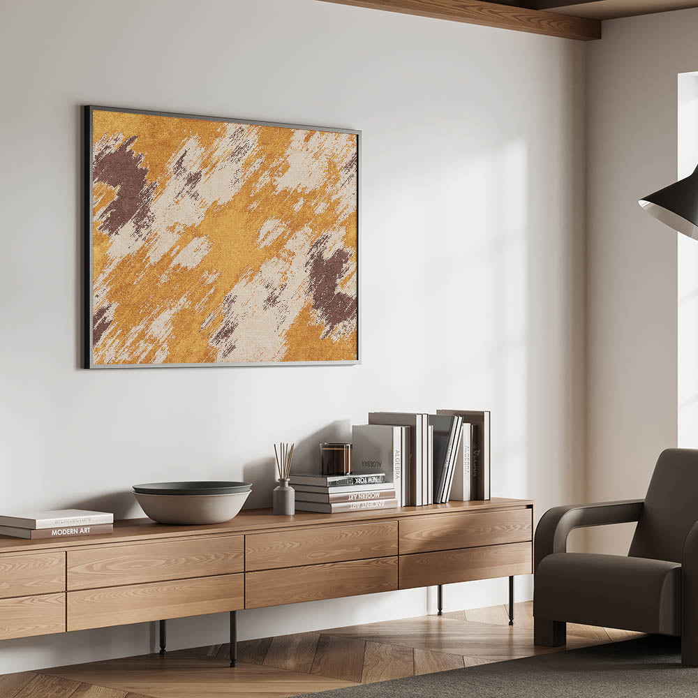 Infuse your space with the vibrant energy of our Abstract Brush Stroke Canvas Art in Rustic Warmth. This artwork showcases dynamic brush strokes in rich shades of brown, orange, and yellow, creating a warm and inviting ambiance. The bold, sweeping strokes add a sense of movement and texture, making this piece a perfect addition to contemporary and modern interiors. Ideal for adding a touch of artistic flair and sophistication to your home or office, this artwork is a must-have for art enthusiasts and decor lovers alike.