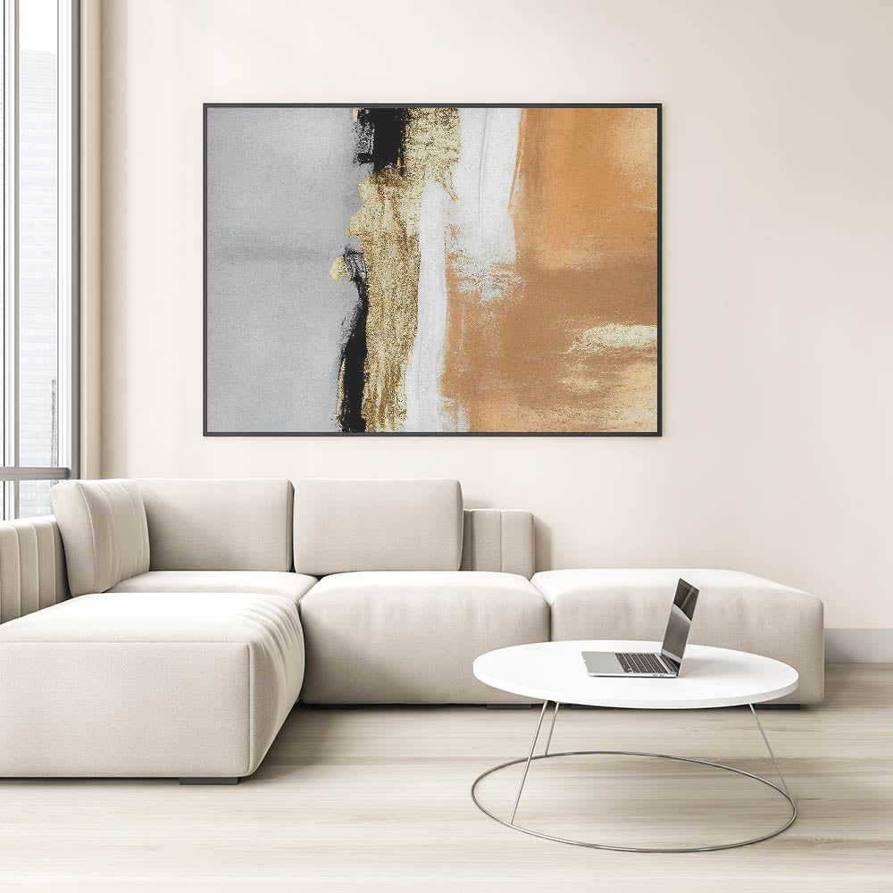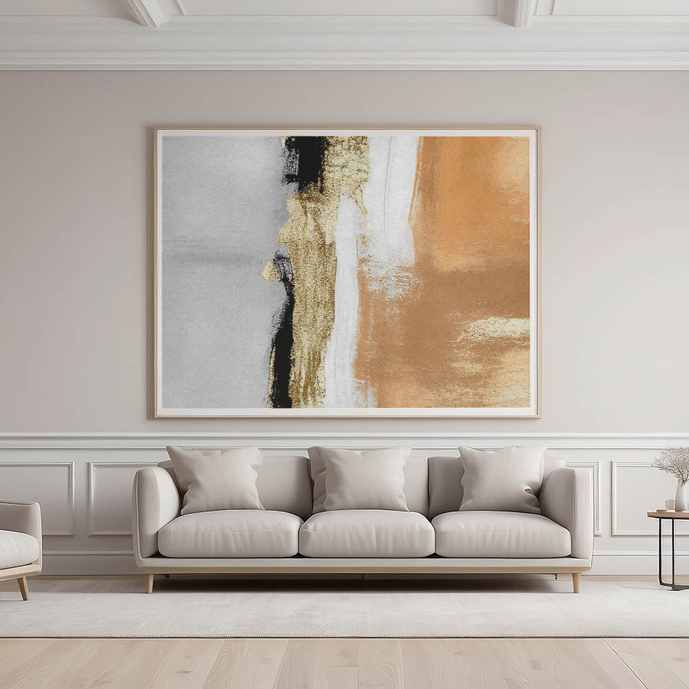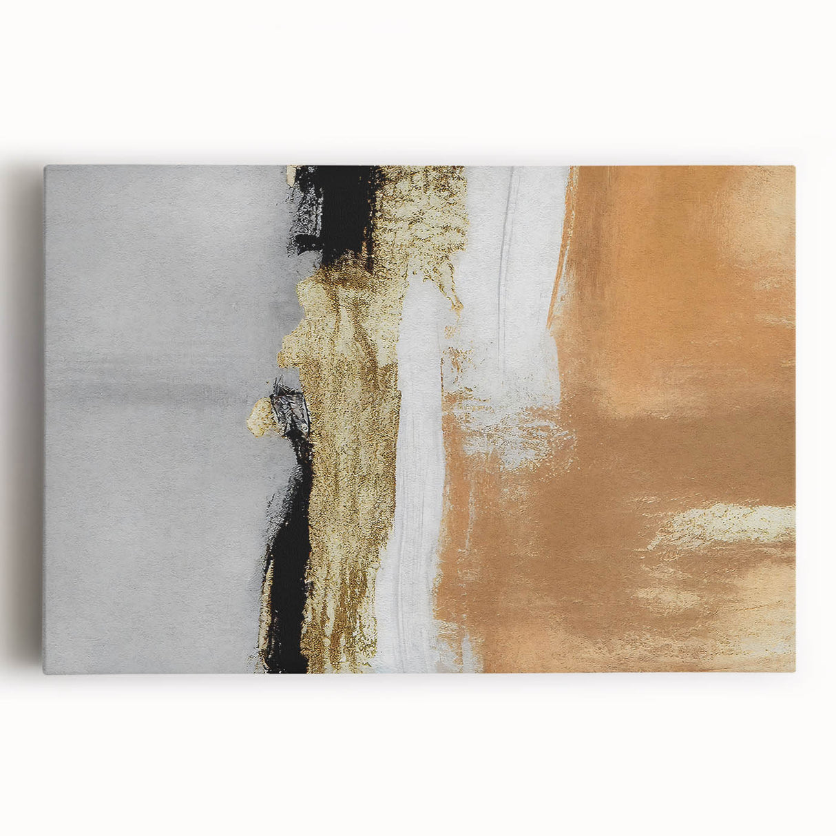 Add a touch of elegance to your space with this Minimalist Strokes Art piece, featuring a harmonious blend of gold, beige, and black strokes. The abstract lines and textures create a sophisticated yet understated design that complements a wide range of interior styles. The warm tones of gold and beige bring a sense of warmth and luxury, while the bold black strokes add depth and contrast to the composition.