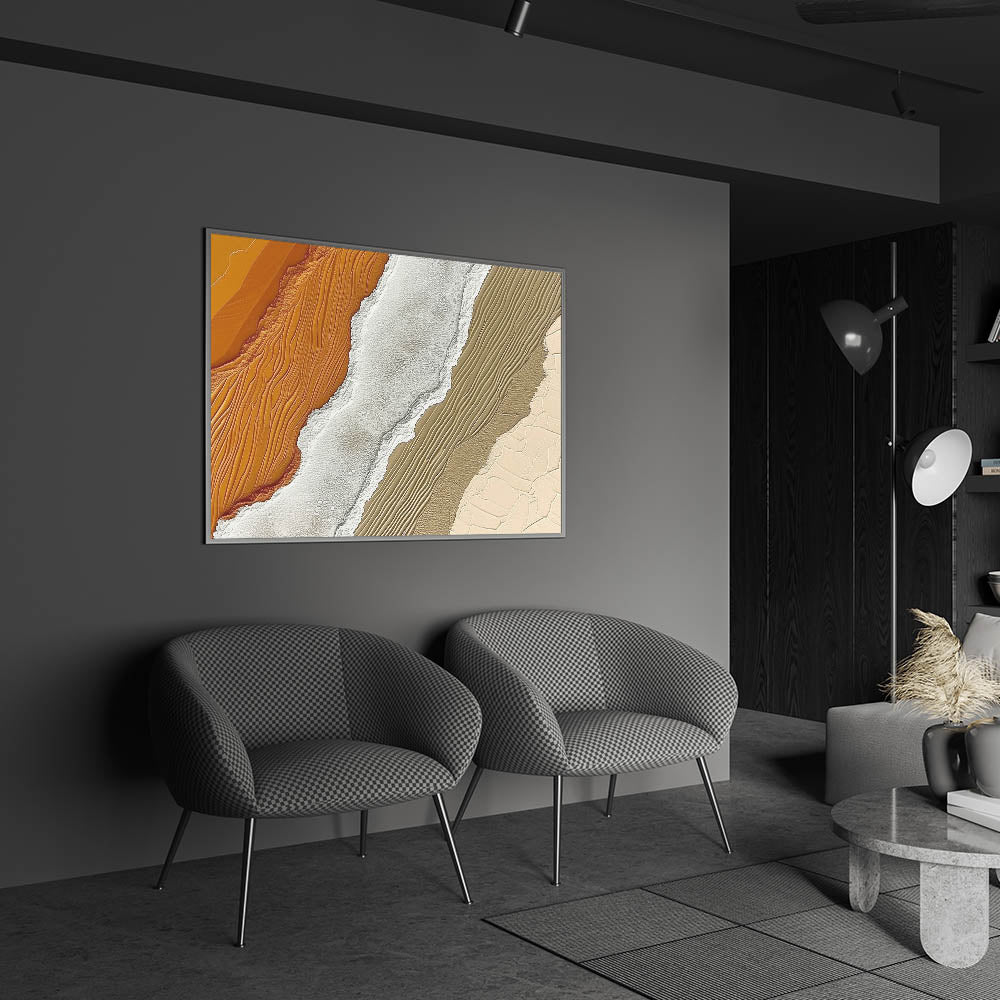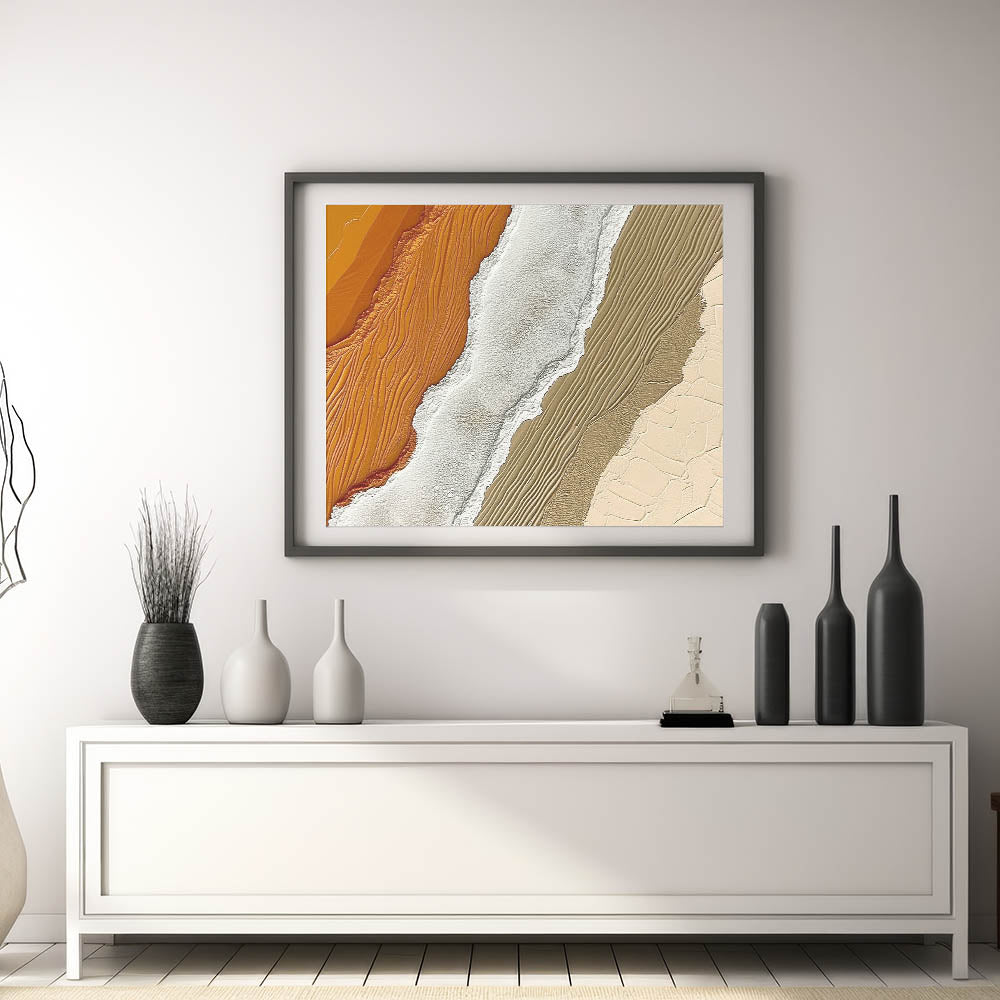 Introduce a stunning piece of wall art that merges dynamic strokes and intricate textures with rich earthy tones. This Abstract Line Art combines shades of orange, beige, cream, and brown, creating a warm and inviting composition that adds a touch of sophistication to any room.