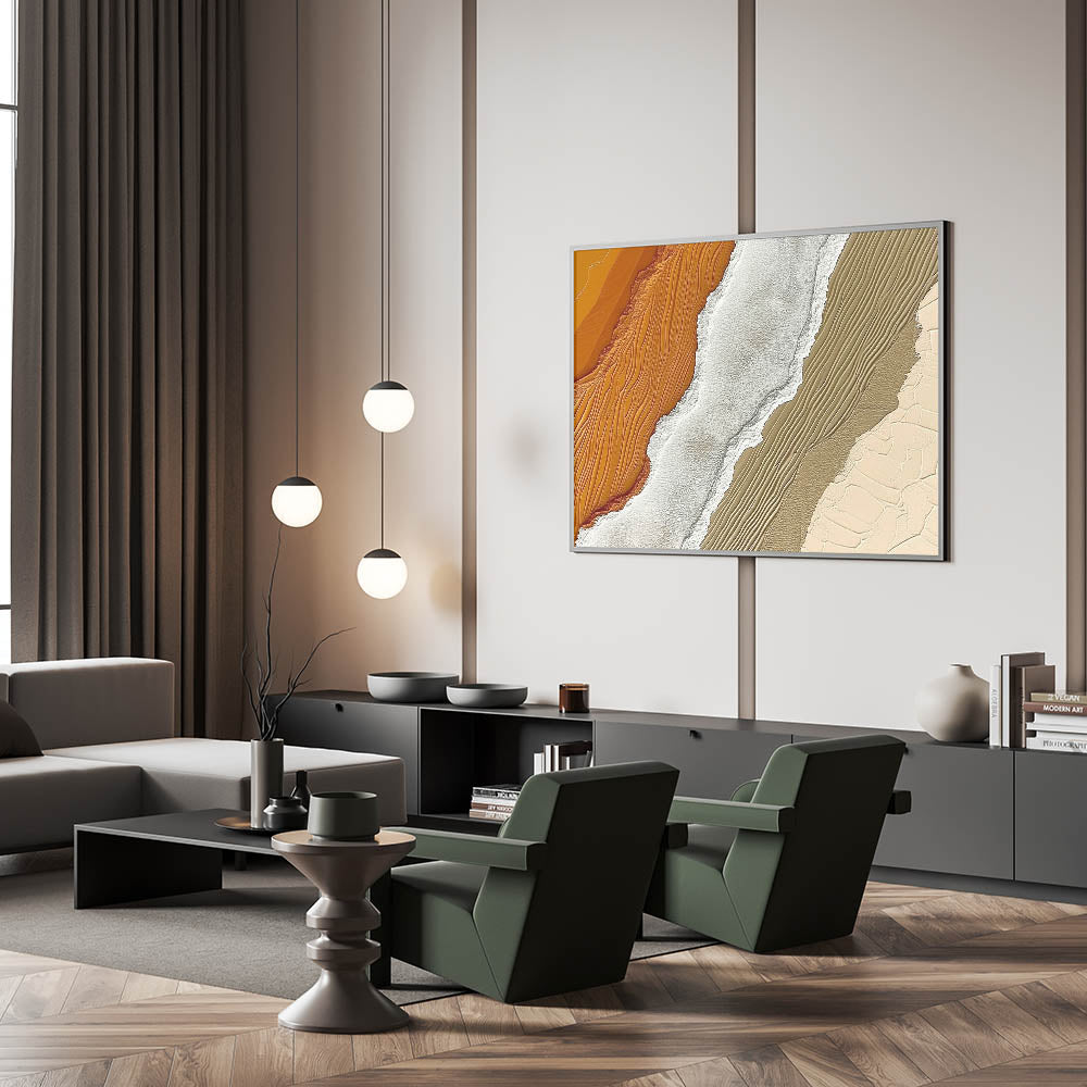 Abstract Line Art with Beige, Orange, and Textured Earthy Tones